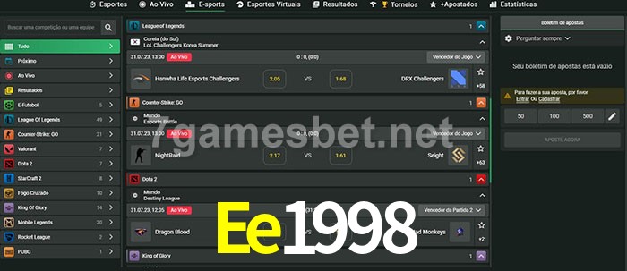 O Ee1998 oferece uma grande seleção de opções de apostas em e-sports com probabilidades competitivas
